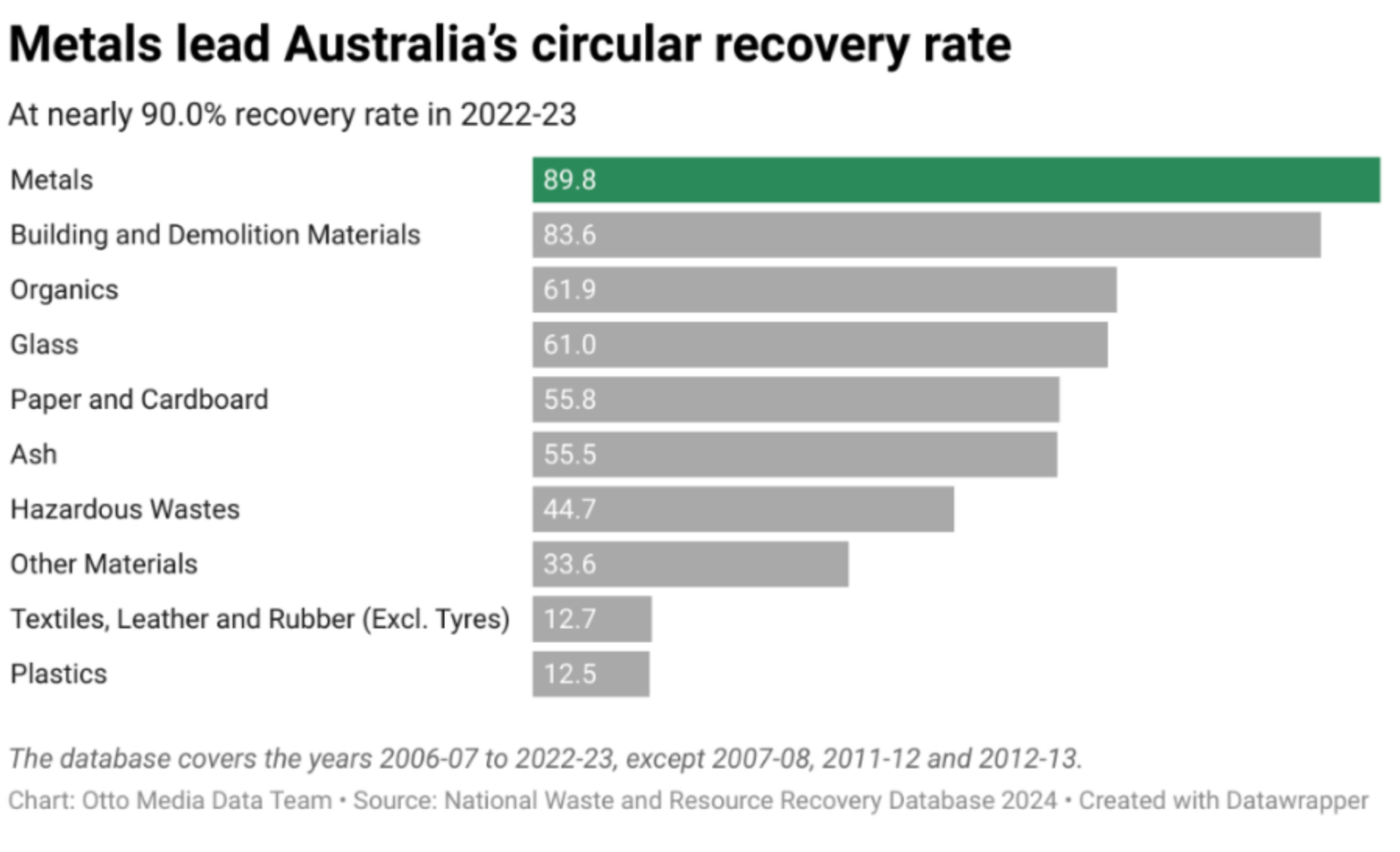 Australia recovers two-thirds of its waste and metals lead at 90% recovery rate