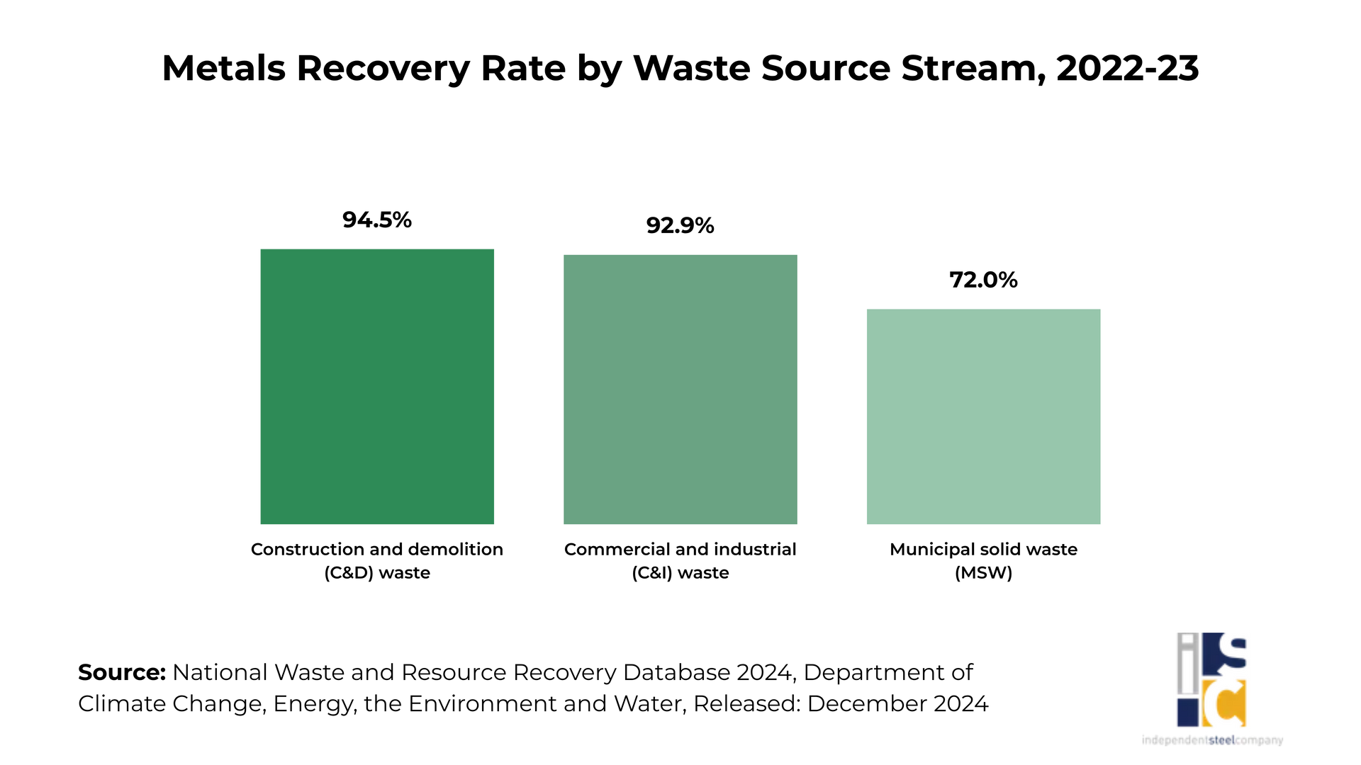 - Metals recorded an 89.9% recovery rate, the highest of any material category.