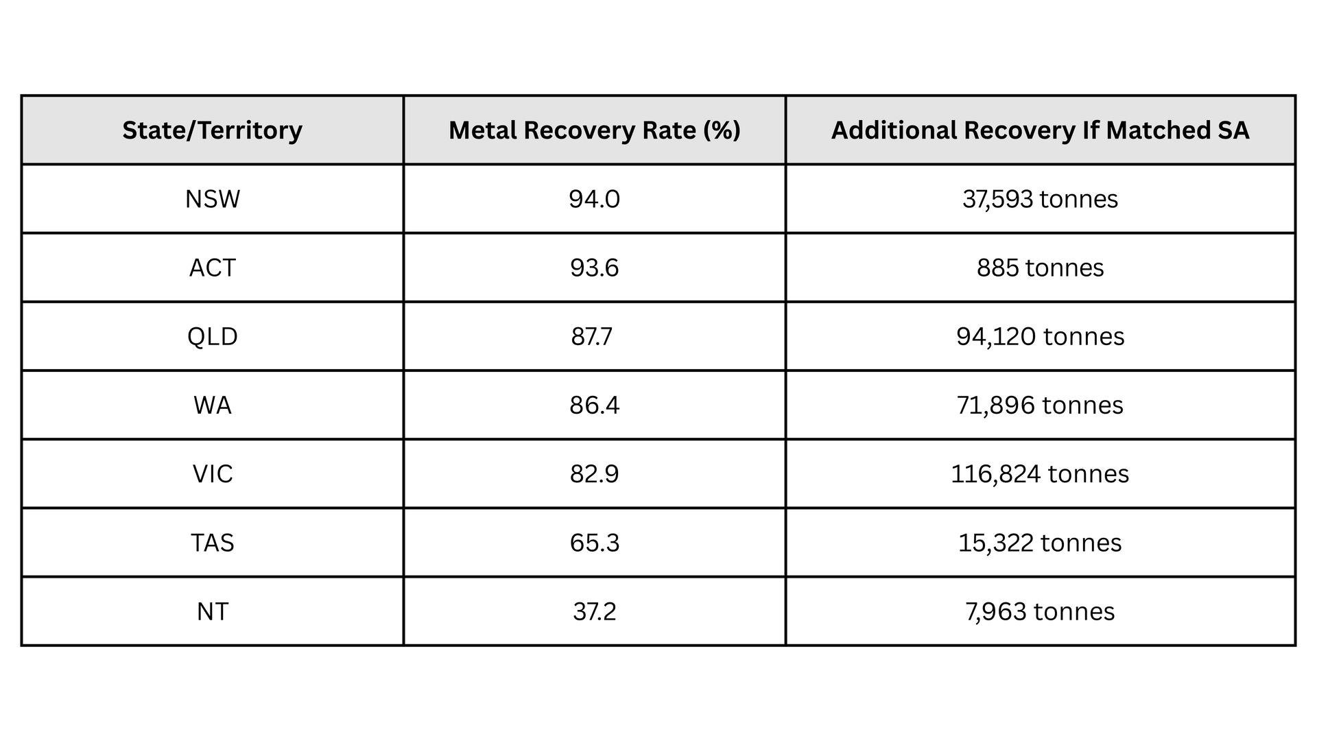 If all states matched SA’s rate, Australia could have recovered an extra 344,603 tonnes of metal in 2022–23.
